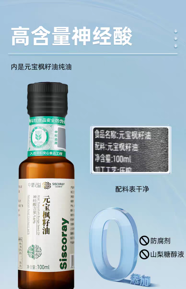 配料:元宝枫籽油净含量:100ML保质期:18个月